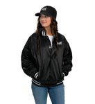 Outer shell of 100% nylon satin * Lined with 100% polyester * Woven label * Snap front * Raglan sleeves for maximum mobility * Striped rib-knit collar cuffs and bottom band * Front pockets * Water-resistant